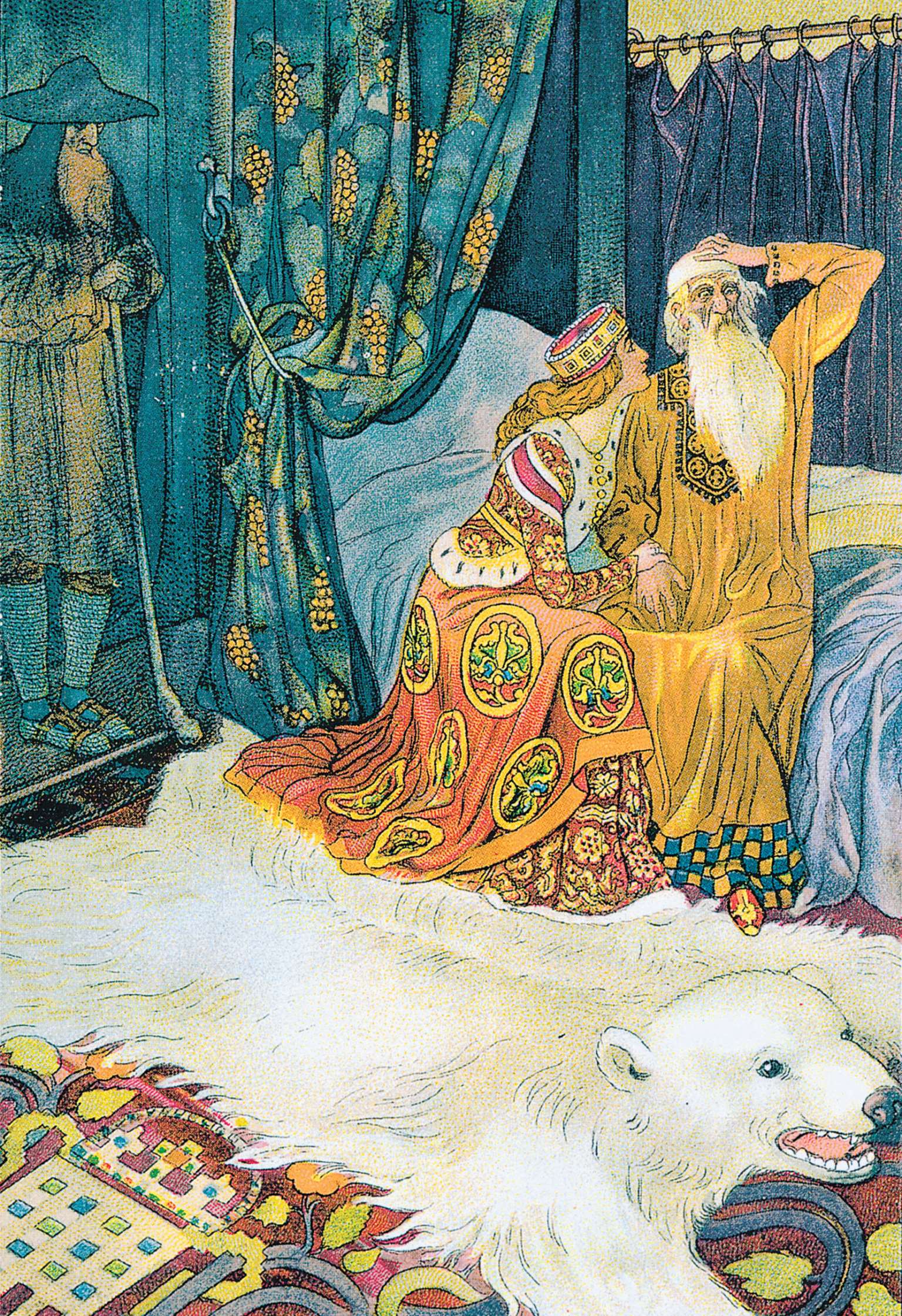 这可怕的消息很快就传遍了维洛那城的每个角落,骚动不安的人群中走出了凯普莱特和蒙太古家族的成员,以及亲王本人,他们都来到了教堂的墓地,想知道究竟发生了什么。这时,几个巡逻的士兵已经抓住了神父。神父颤抖着,叹息着,哭泣着,来到亲王面前,请求让他讲出一切事情的真相。