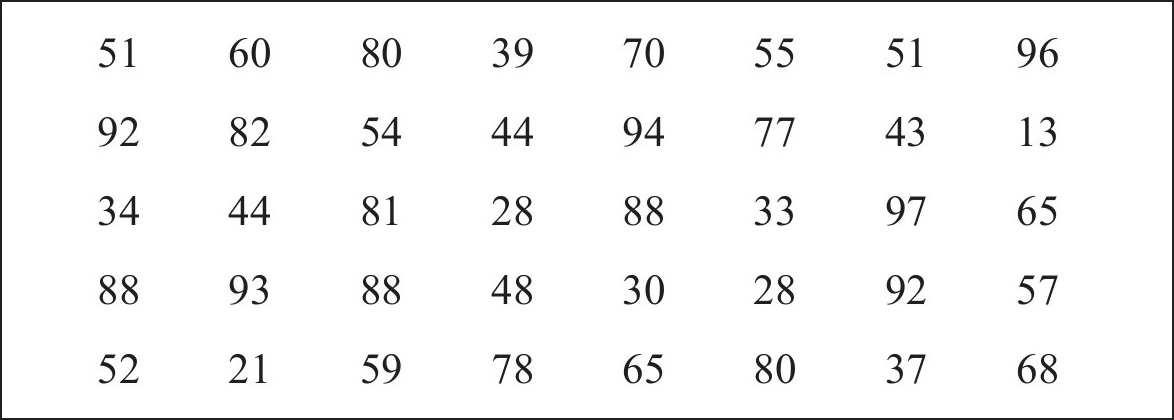 N数学培训班对40名学生进行了突击测验(满分为100分)。测验成绩如下表所示: