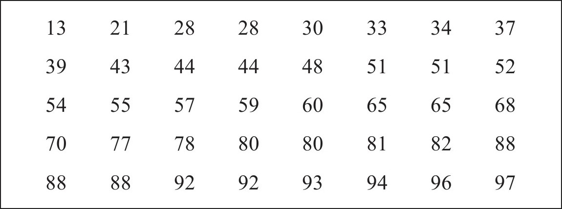 N数学培训班对40名学生进行了突击测验(满分为100分)。测验成绩如下表所示: