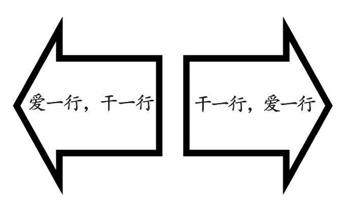 另一种观点是:得找到一个特别适合自己的工作,我才能去做。简称: 爱一行,干一行 。