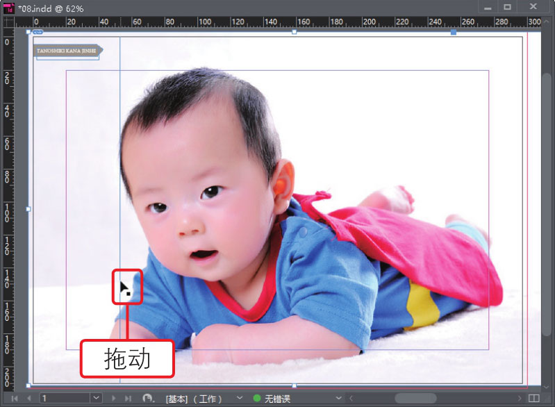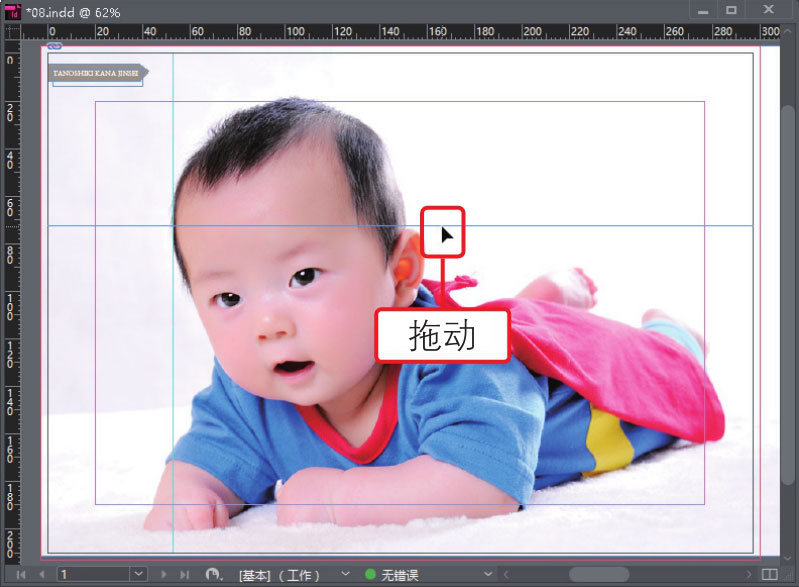 02 若要添加垂直参考线,将鼠标指针移到垂直标尺上,按住鼠标左键并沿垂直方向拖动,如下图所示,释放鼠标,即可得到垂直参考线。