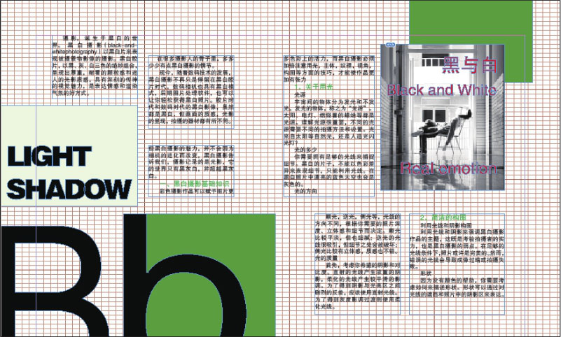 在InDesign中可以使用“版面网格”对话框来设置字符网格,也可以通过执行“显示/隐藏版面网格”菜单命令选择是否显示版面网格。