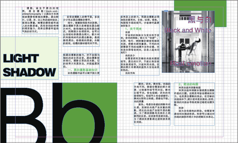 05 根据所输入的行数和栏数等选项,在页面中创建相应数量的参考线,如下图所示即为创建的参考线效果。