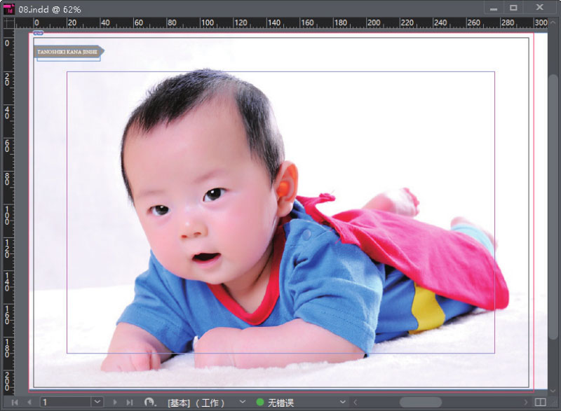 01 打开03.indd,执行“视图>标尺”菜单命令,或按下快捷键Ctrl+R,在文档中显示标尺,如下图所示。