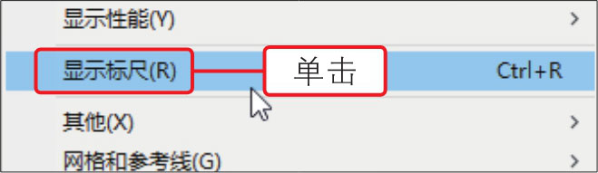 02 打开素材文件后,可看到工作界面中未显示标尺,执行“视图>显示标尺”菜单命令,如下图所示。