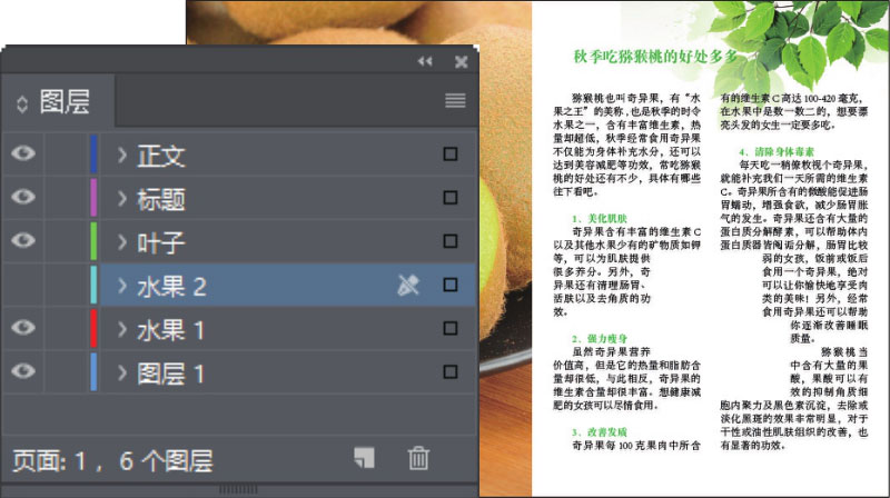 在InDesign中,每个新文档在打开时都包含一个默认的“图层1”图层,它包含了当前文档中的所有对象。编辑文档时可以创建新图层来调整页面中的对象,也可以通过复制图层在页面中创建丰富的版面效果。
