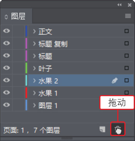 按住鼠标左键不放,将图层拖至面板下方的“删除选定图层”按钮