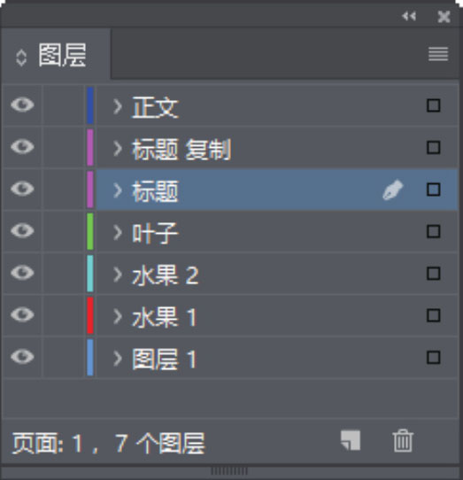 01 打开14.indd,在“图层”面板中选中需要进行复制的“标题”图层,如下图所示。