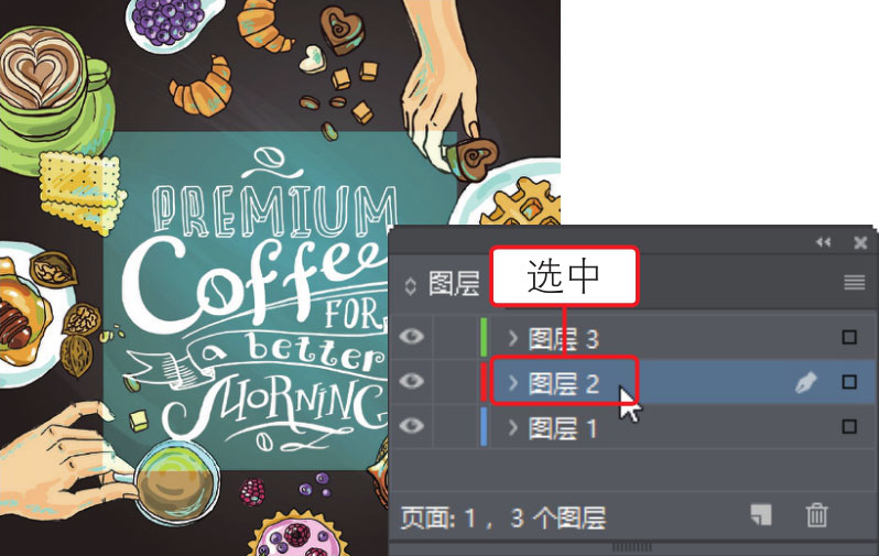 01 打开13.indd,在“图层”面板中选中需要设置属性的“图层2”图层如下图所示。