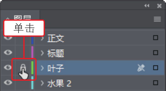 01 打开14.indd,在“图层”面板中选择需要锁定的图层,单击图层名前方第2栏中的空白框,如下图所示。