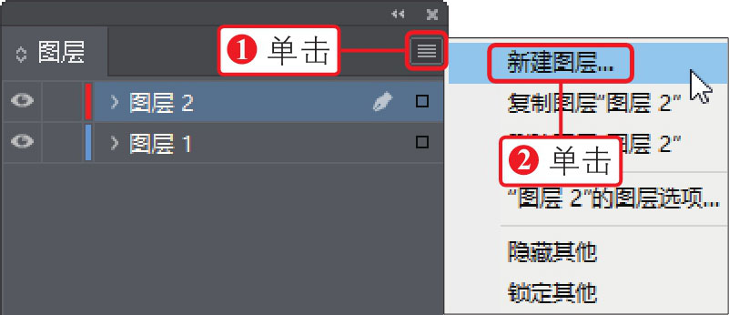 如果需要在创建图层时重命名图层,①单击“图层”面板右上角的扩展按钮