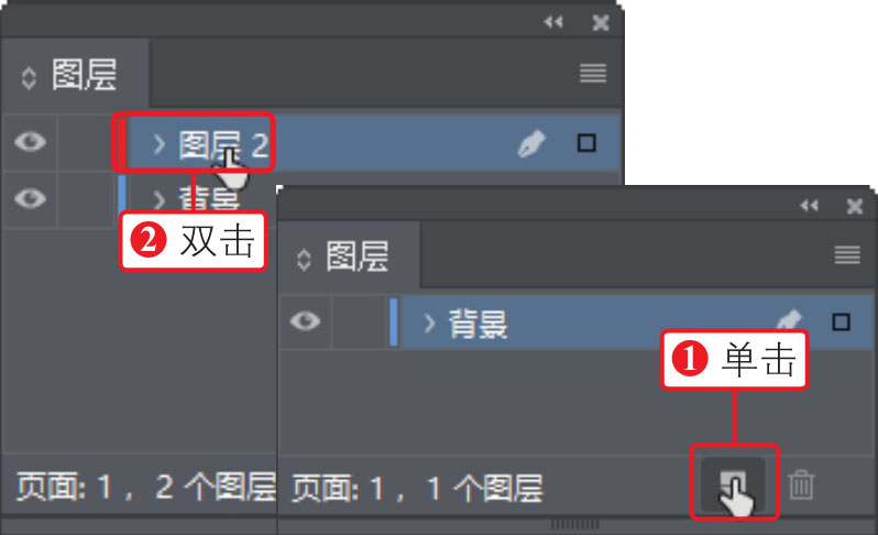 ,在“图层”面板中创建“图层2”图层,②双击创建的“图层2”图层,如下图所示。