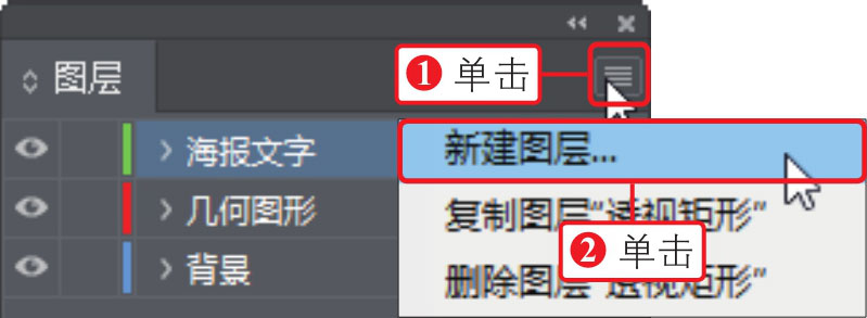 ,②在展开的面板菜单中单击“新建图层”命令,如下图所示。