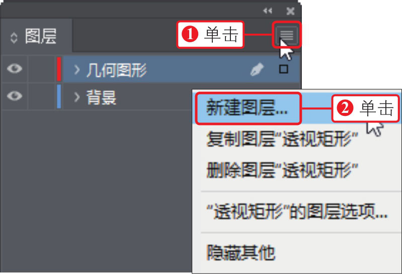 ,②在展开的面板菜单中执行“新建图层”命令,如下图所示。