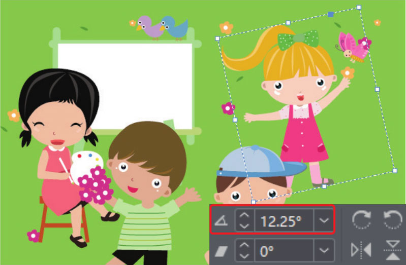 InDesign提供了用于调整对象大小或形状的变换工具组,此工具组包含“自由变换工具”“旋转工具”“缩放工具”和“切变工具”,应用这些工具可以轻松完成对象的调整操作。此外,还可以应用“变换”命令对对象进行相应调整。
