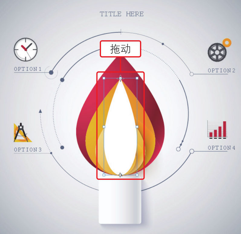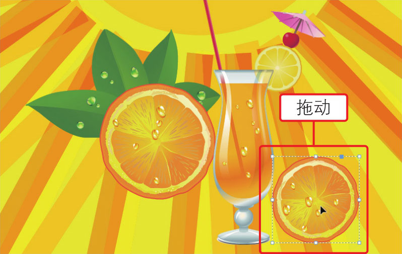 02 将选中对象向目标位置拖动,拖动到合适的位置后释放鼠标,完成对象的移动操作,如下图所示。