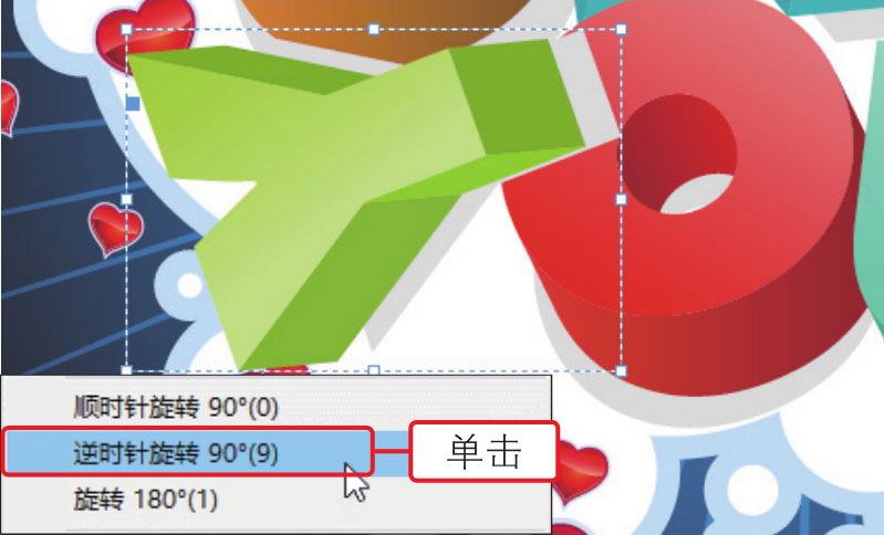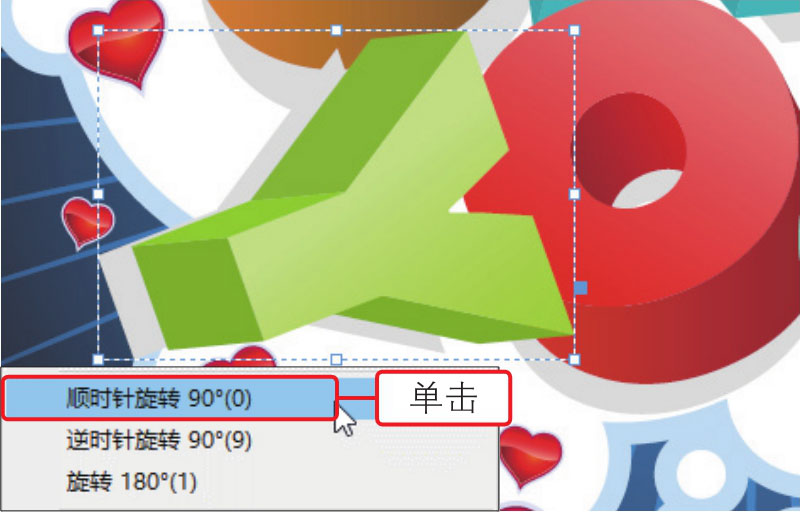 应用“顺时针旋转90°”命令可以将所选对象顺时针旋转1/4圈,应用“逆时针旋转90°”则可以将所选对象逆时针旋转1/4圈。