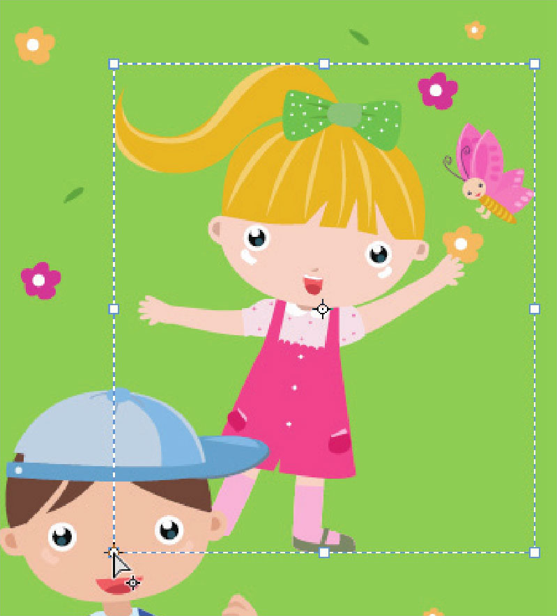 ,在需要倾斜的图形上单击,图形周围将出现变换控制柄,如下图所示。