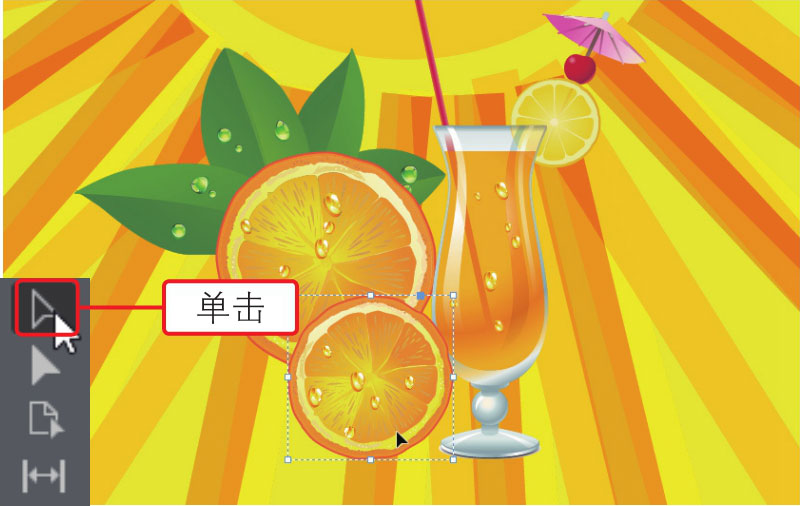 01 打开06.indd,选中工具箱中的“选择工具”,在页面中单击选中需要缩放的对象,如下图所示。