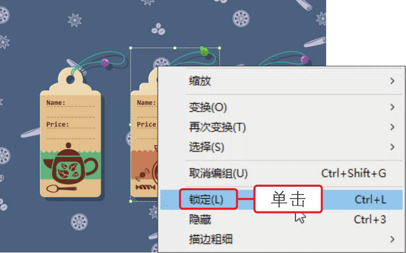 02 右击选中的对象,在弹出的快捷菜单中执行“锁定”命令,即可将所选对象锁定起来,如下图所示。