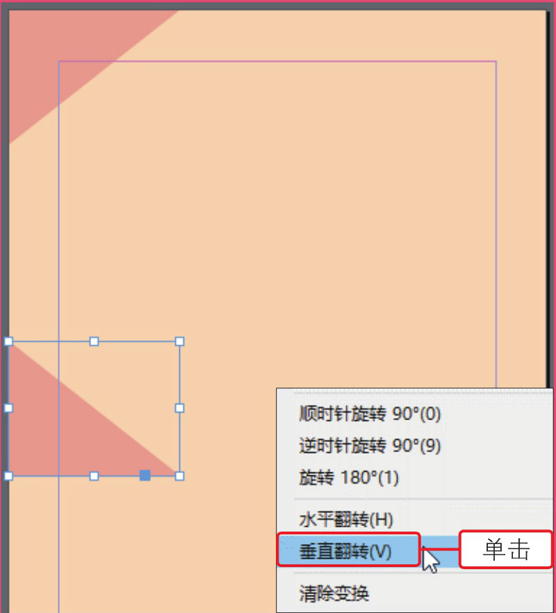 05 右击复制的图形,在弹出的快捷菜单中执行“变换>垂直翻转”菜单命令,翻转图形,如下图所示。