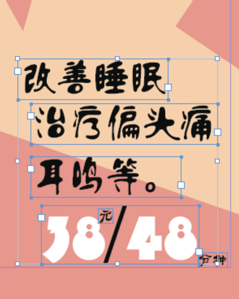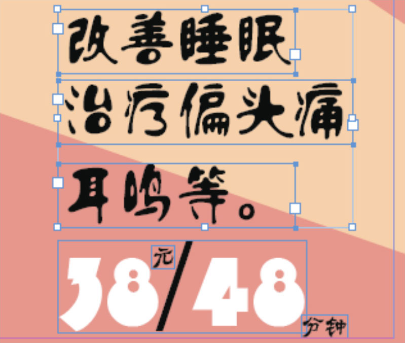 13 单击工具箱中的“选择工具”按钮,按住Shift键不放,单击文本“元”和“分钟”,同时选中两个文本对象,如下图所示。