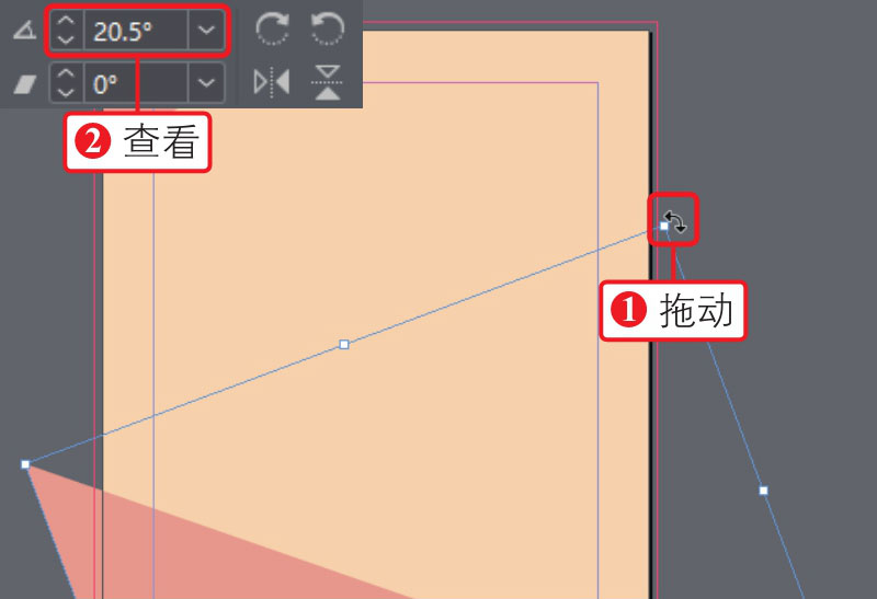 ①移动鼠标指针至右上角控点位置,当鼠标指针变为折线箭头