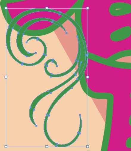 18 继续使用“钢笔工具”绘制不同形状的图形,再单击“选择工具”按钮,按住Shift键不放,单击选中所有绘制的花纹图形,如下图所示。