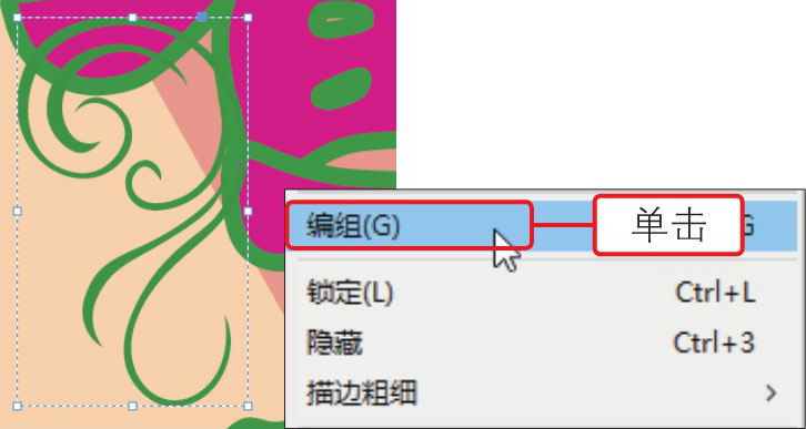 19 右击选中的图形,在弹出的快捷菜单中执行“编组”命令,将选中的对象进行编组,如下图所示。