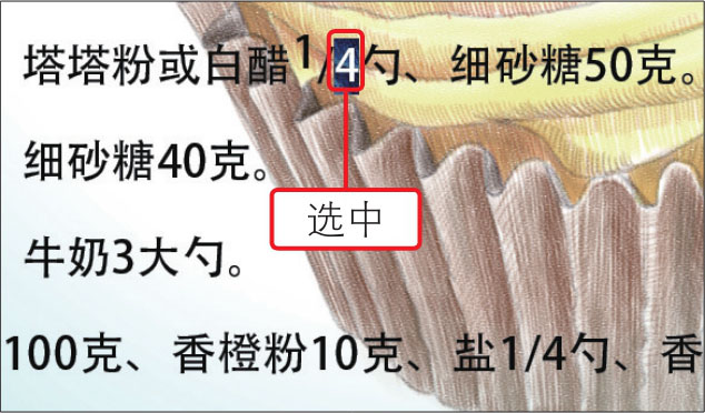 04 应用“文字工具”选中文档中需要设置基线偏移效果的数字“4”,如下图所示。