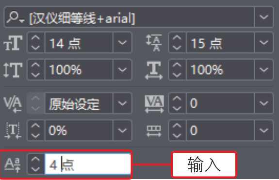 02 按下快捷键Ctrl+T,打开“字符”面板,在面板中的“基线偏移”数值框中输入数值为4点,如下图所示。