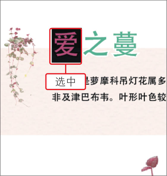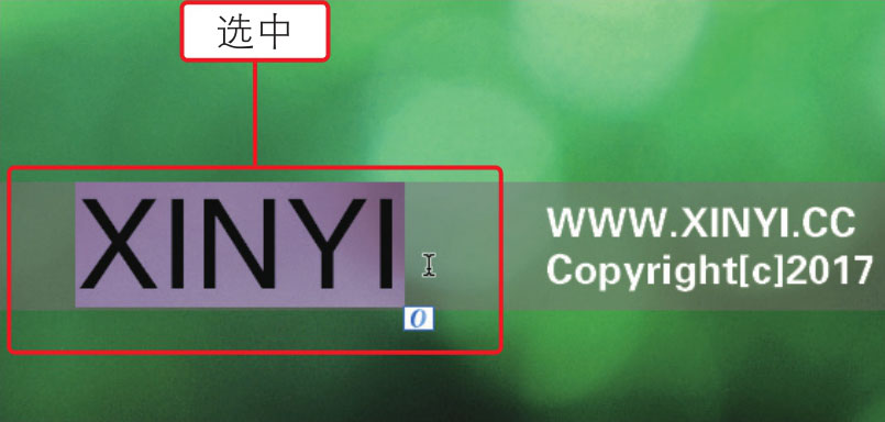,在文字上单击并拖动,选中文字对象,如下图所示。