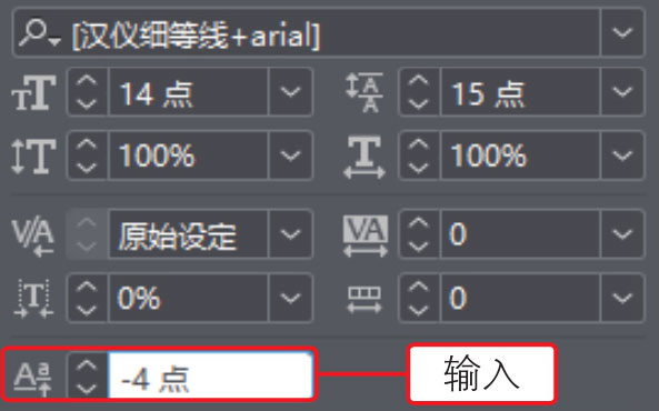 05 打开“字符”面板,在面板中的“基线偏移”数值框中输入数值为-4点,如下图所示。