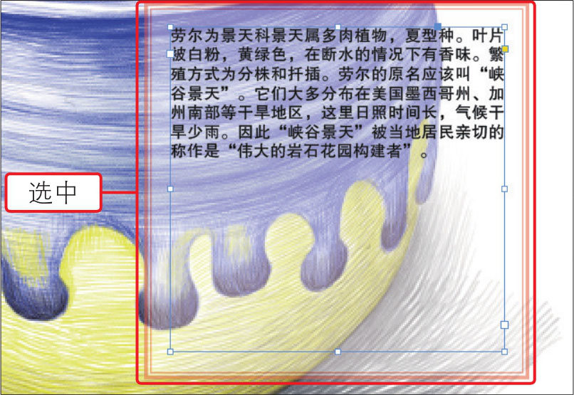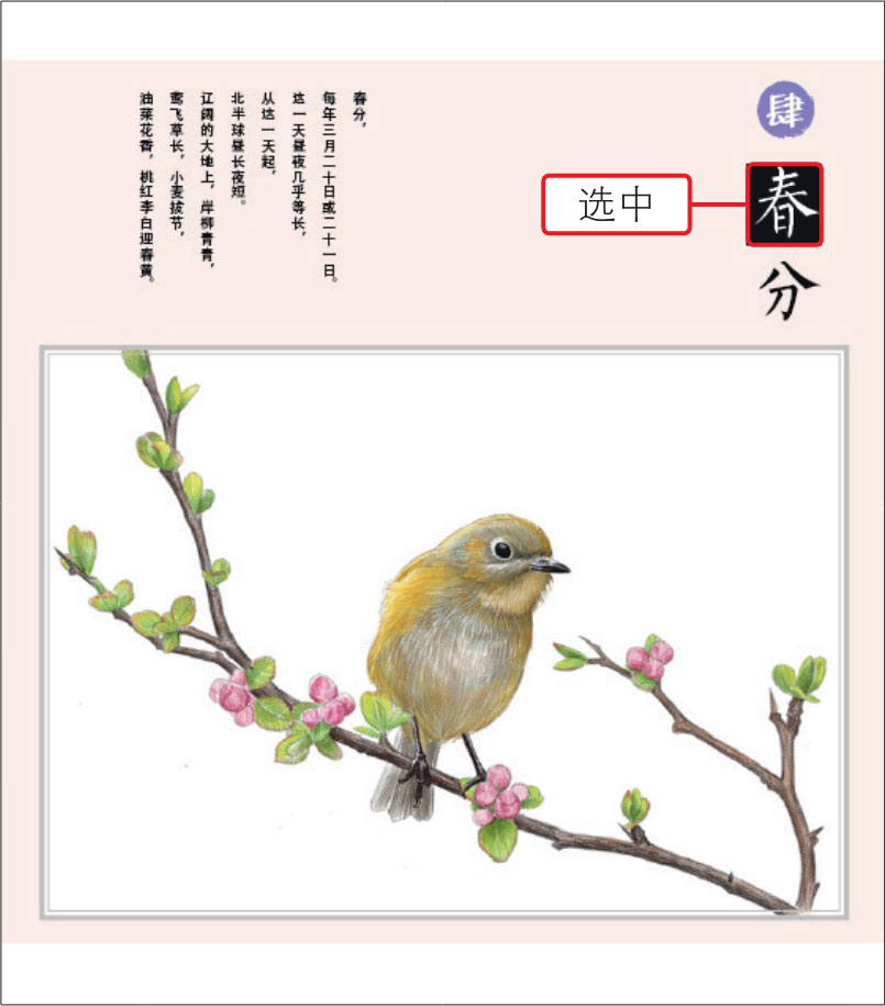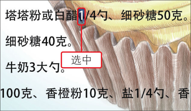 01 打开10.indd,使用“文字工具”在需要调整的文字对象上单击并拖动,选中文字使其反相显示,如下图所示。