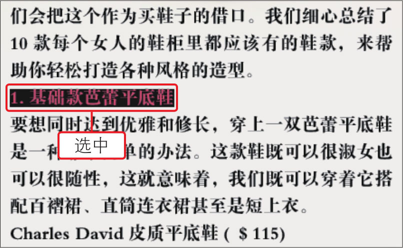 05 打开22.indd素材文档,在文档中选中要应用样式的文字,如下图所示。