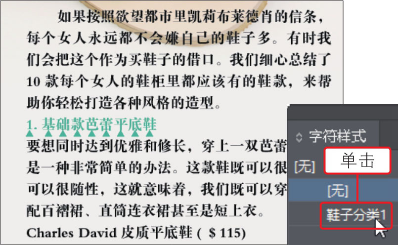06 单击“字符样式”面板中创建的样式,即可对该文字应用样式效果,如下图所示。