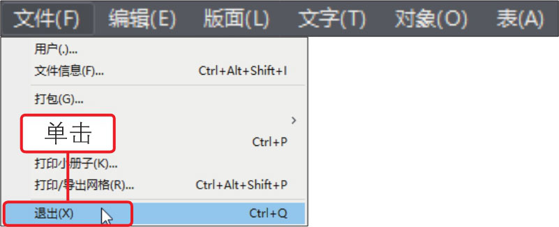 要退出InDesign CC,执行“文件>退出”菜单命令,如下图所示,即可退出应用程序。