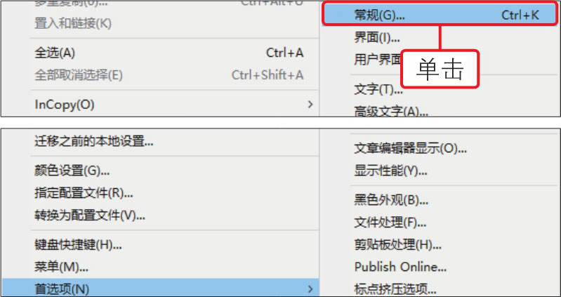 运用InDesign编辑文档前,可以先对软件的一些常用系统参数进行优化设置,例如项目首选项、指定菜单或键盘快捷键等。