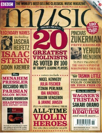 ●当期特邀一百位世界最著名的小提琴家,各自选出从唱片时代开始至今最好的三位小提琴家,在此基础上又评选出了二十位最伟大的小提琴家:20. G.埃内斯库(1881-1955,罗马尼亚),19. F.P.齐默尔曼(1965- ,德),18. R.格贝尔(1952- ,德),17. C.费拉(1933-1982,法),16. B.胡贝尔曼(1882-1947,波兰), 15. L.科岗(1924-1982,俄),14. I.吉特利斯(1922- ,以色列),13. A.布施(1891-1952,德),12. P.祖克曼(1948- ,以色列),11. A.格吕米欧(1921-1986,比利时),10. I.佩尔曼(1945- ,以色列-美),9. I.斯特恩(1920-2001,波兰-美),8. G.内弗(1919-1949,法),7.J.西盖蒂(1892-1973,匈牙利),6. G.克莱默(1947- ,拉脱维亚),5.N.米尔斯坦(1903-1992,俄-美), 4. Y.梅纽因(1916-1999,美),3. F.克莱斯勒(1875-1962,奥),2. J.海菲茨(1901-1987,俄-美),1. D.奥伊斯特拉赫(1908-1974,俄)。