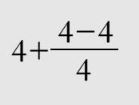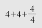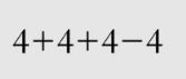 “4个4”题的定义如下:”利用4个4,加上数学符号,写成数学式以表示一特定的整数值。不可使用4之外的任何数字、字母,或内含字母的代数符号,如log、lim等等。”