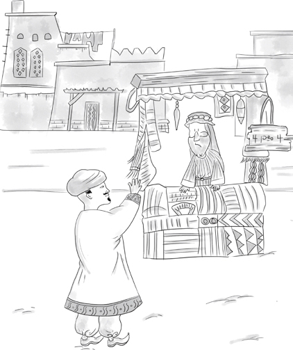 店主听懂了撒米尔的解释,两年来的困惑现在终于获得解决。满意的他也信守承诺,把那条售价4个第纳尔的蓝色缠头巾,送给我们这位数数的人。