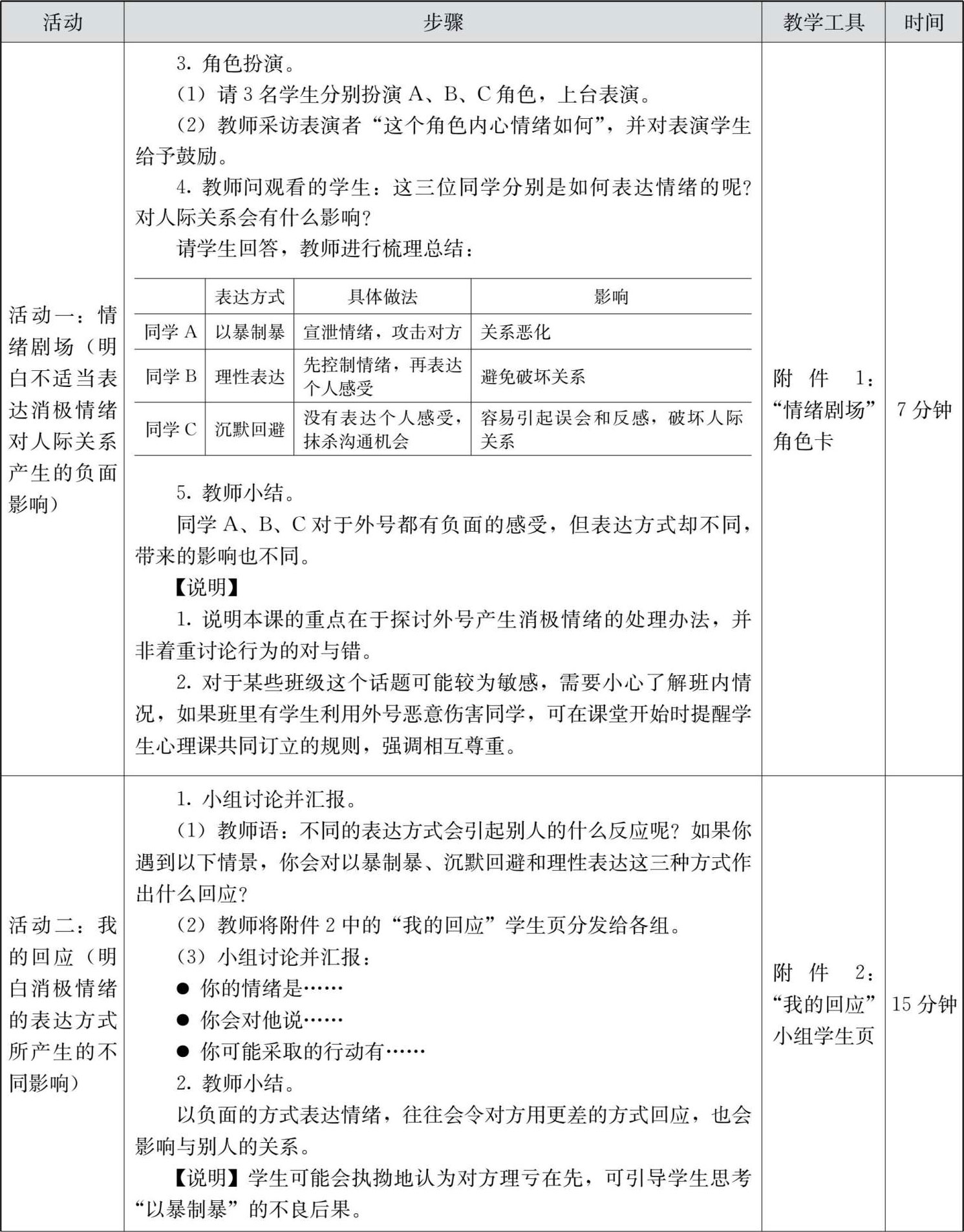 2.学生能用恰当的方式表达消极情绪,维护人际关系。