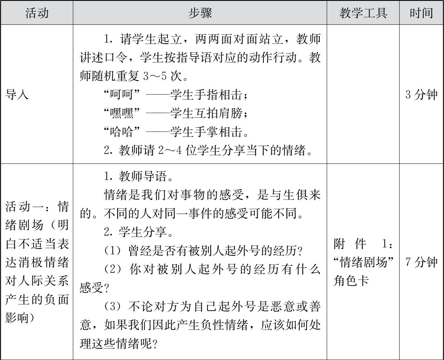 6.【延伸活动】强化学生以恰当的方式表达消极情绪。