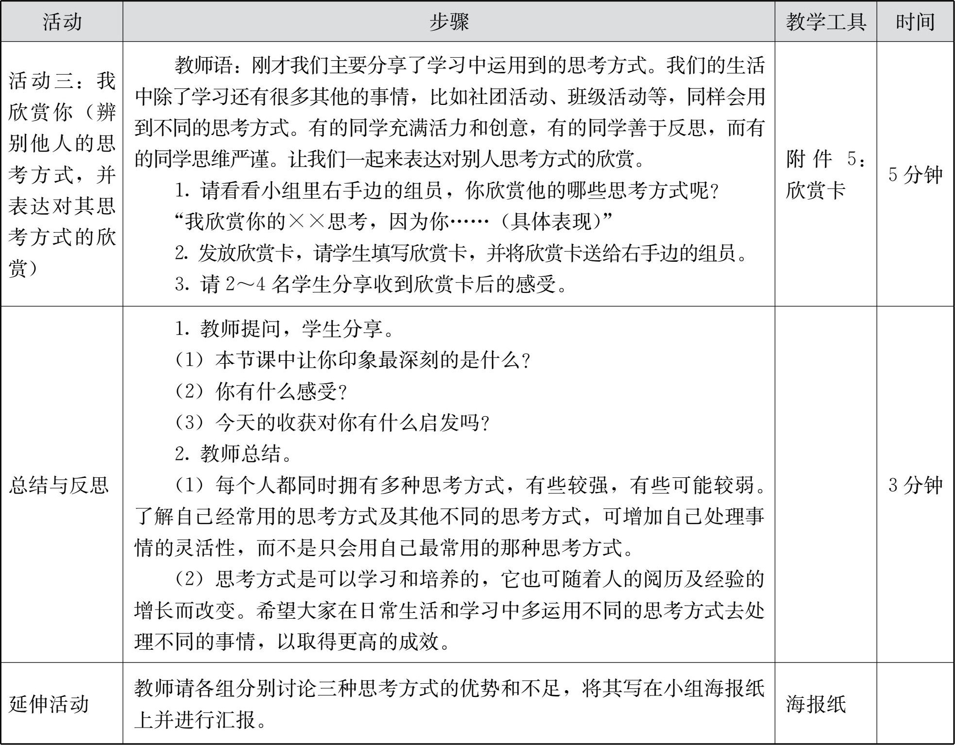 4.【活动三:我欣赏你】辨别他人的思考方式,并表达对其思考方式的欣赏。
