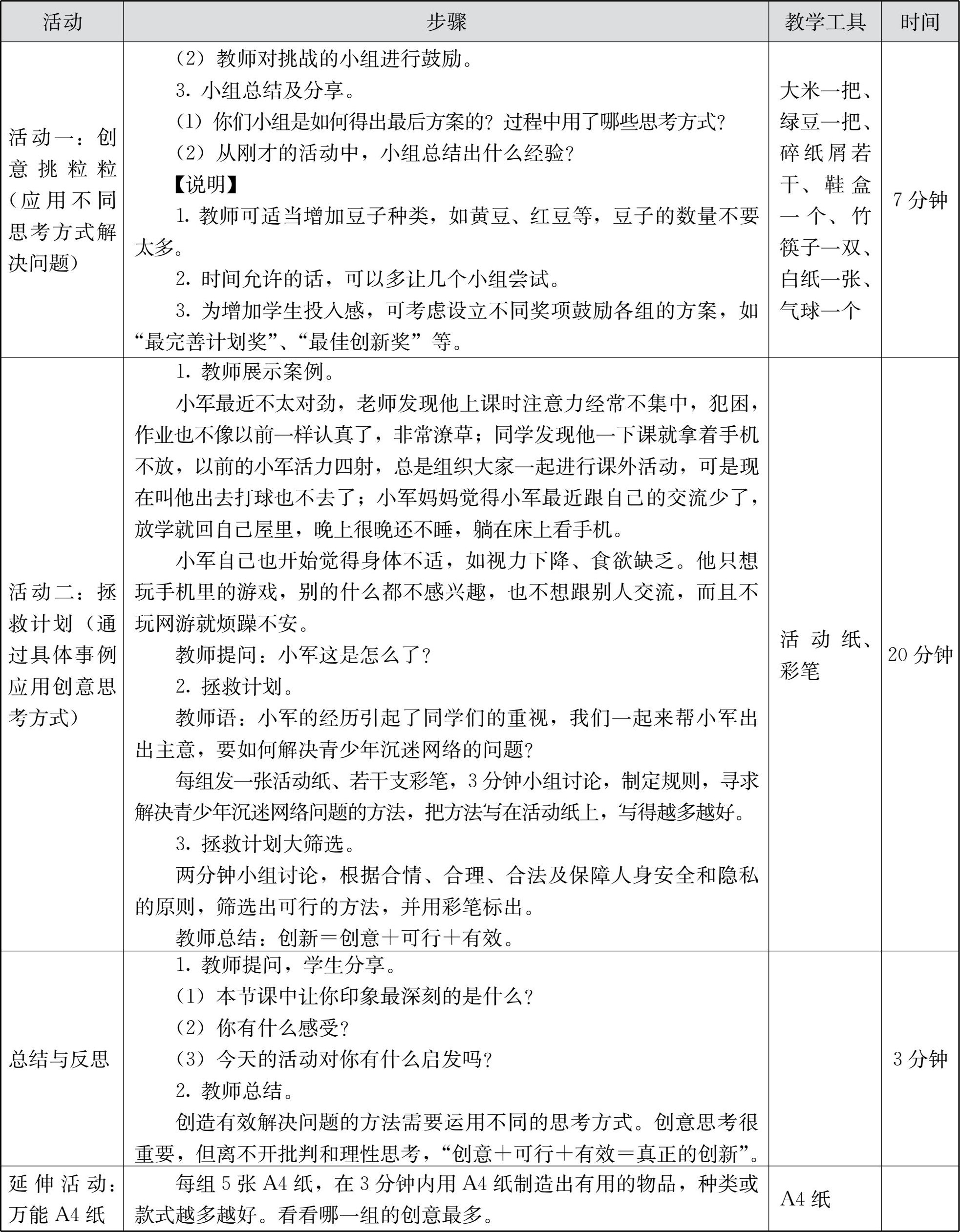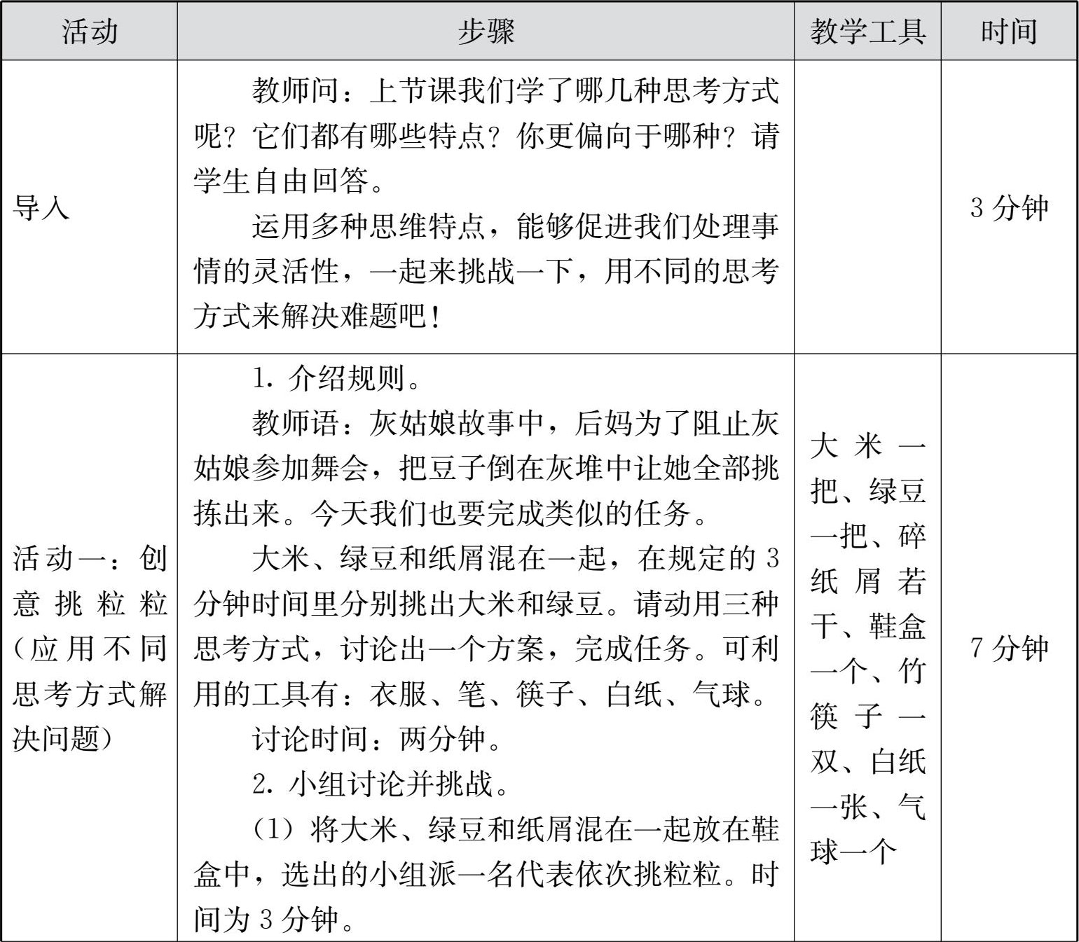 2.【活动一:创意挑粒粒】学生在活动中体验应用创意思考方式解决问题。