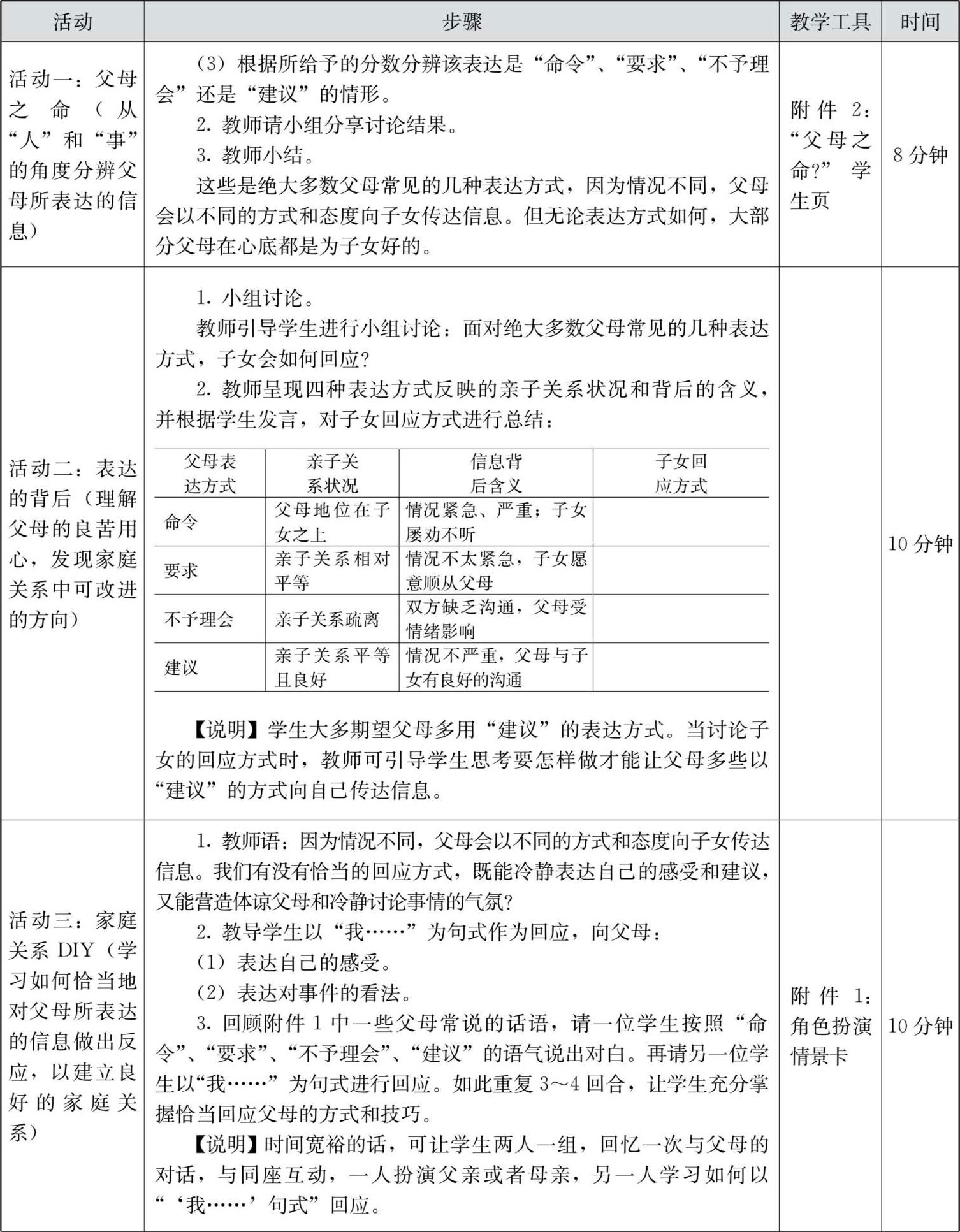 4.【活动三:家庭关系DIY】学习如何恰当地对父母所表达的信息做出反应,以建立良好的家庭关系。