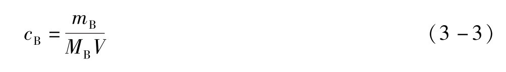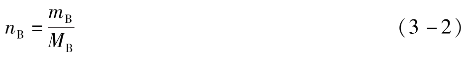 式中 m B 为溶质B的质量,单位为g; M B 为溶质B的摩尔质量,单位为g·mol -1