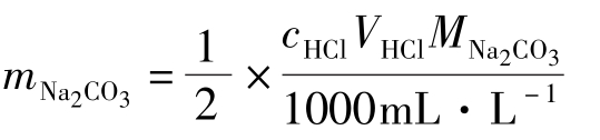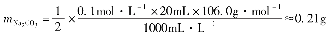 m Na2CO3 = T Na2CO3/HCl V HCl =0.005000×20.00=0.1000(g)