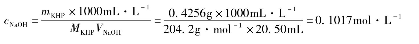 2.精密称取基准物质草酸(H 2 C 2 O 4 ·2H 2 O)0.2025g,溶于适量水中,用待标定的NaOH溶液滴定,以酚酞为指示剂滴定至终点时,消耗20.00mL,请计算此NaOH溶液的物质的量浓度。( M H2C2O4·2H2O =126.07g·mol -1