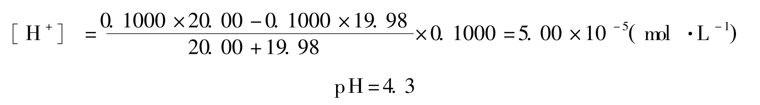 例如,当滴入NaOH溶液20.02mL,即化学计量点后0.1%时,